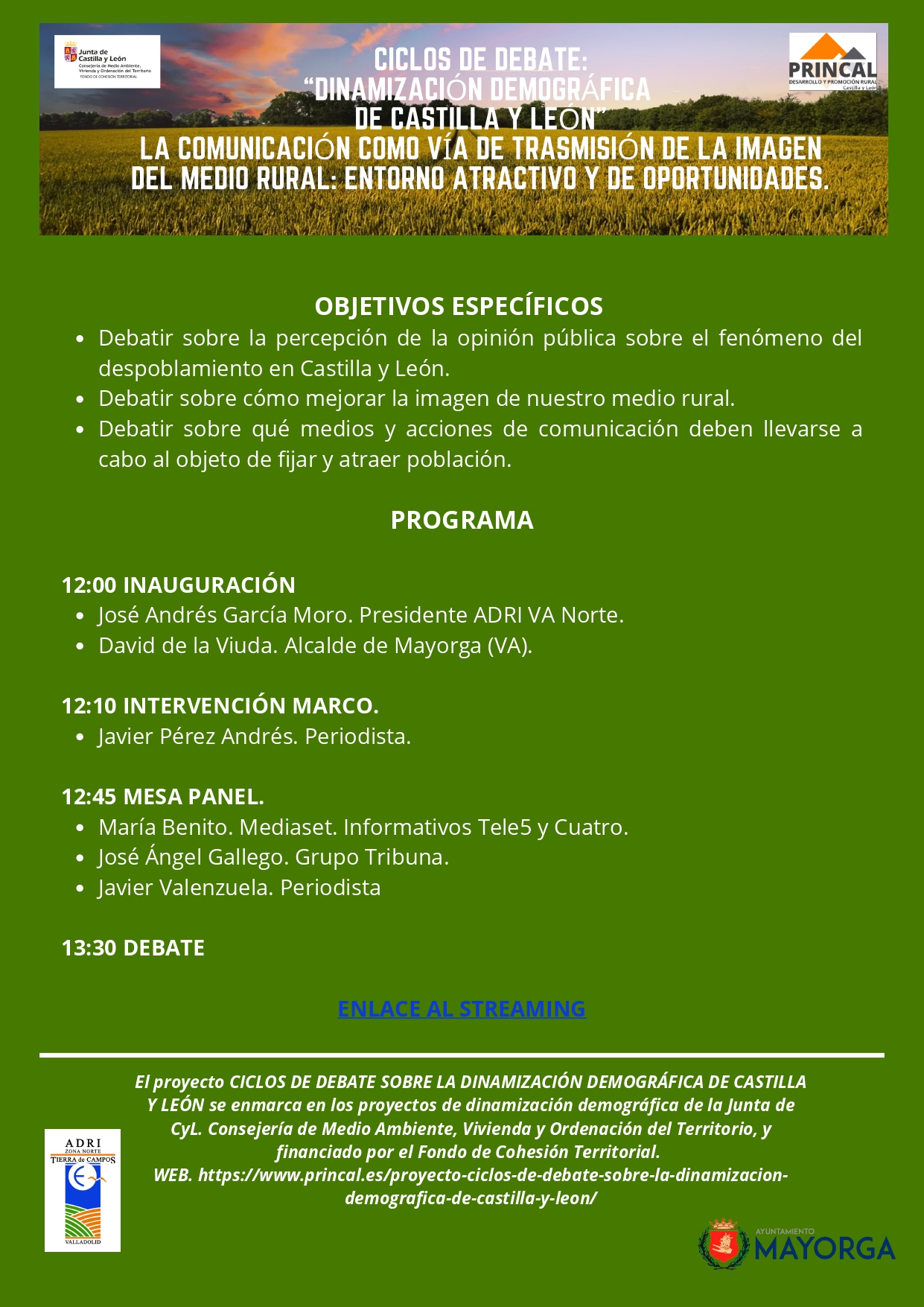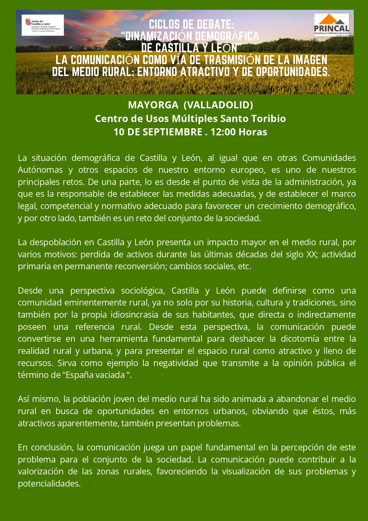 MAYORGA (VALLADOLID) Centro de Usos Múltiples Santo Toribio 10 DE SEPTIEMBRE . 12:00 Horas